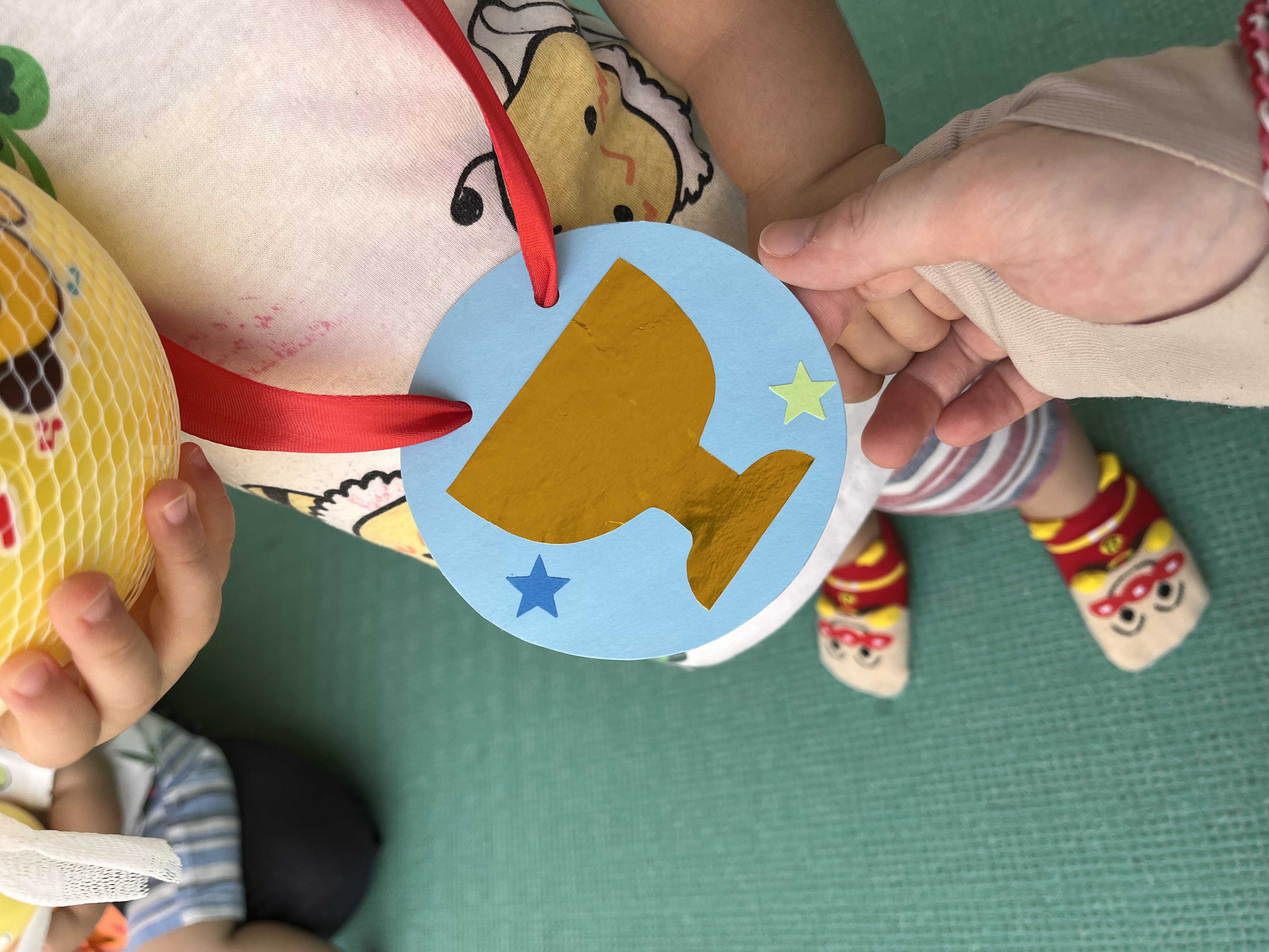 ぴかぴかの金メダルとおみやげのボール
