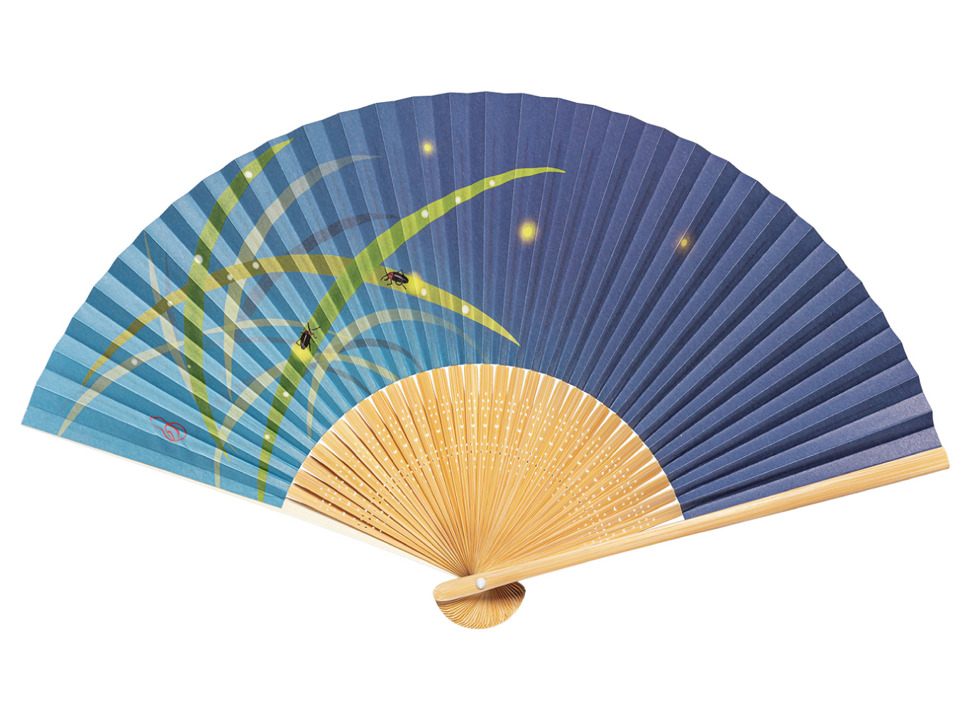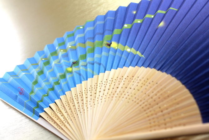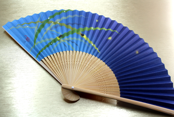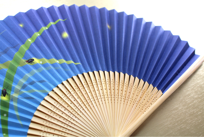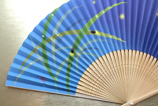 名入れ扇子優しい水彩画で笹にとまって光る蛍が描かれた、シンプルな扇子です。京都で作った扇面紙に図案作家の画を施しました。どのシーンでも使え、オールマイティーなギフト選びに、販促品もプレゼントもこれ一つでOK! 扇ぐとほのかに香り漂う涼やかな扇子です。