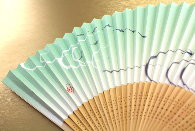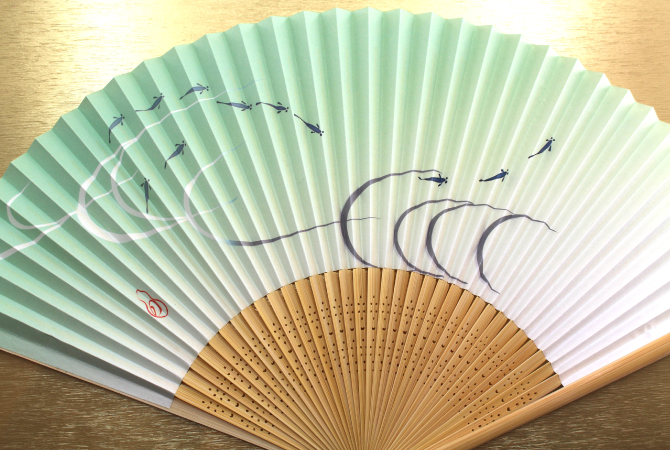 名入れ扇子めだかが上品な色調で描かれた扇子です。 京都製扇面紙と竹の外側の硬い上骨部分を使用しています。京都の図案作家が上絵を施しています。どのシーンでも使え、オールマイティーなギフト選びに、販促品もプレゼントもこれ一つでOK! 扇ぐとほのかに香り漂う涼やかな扇子です。