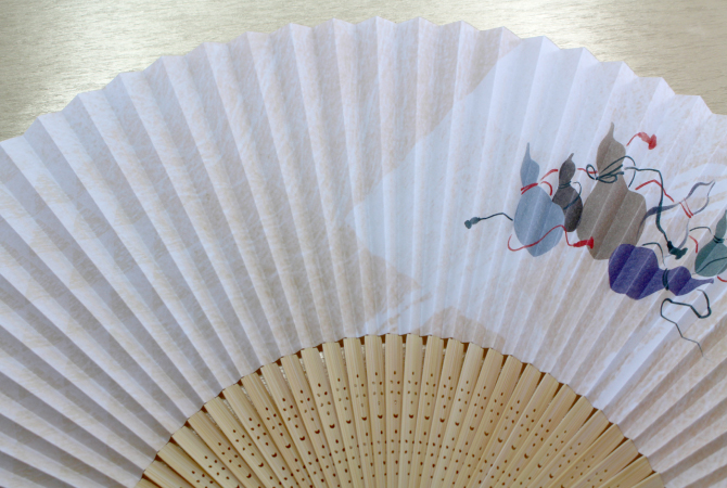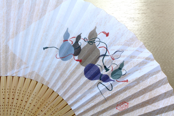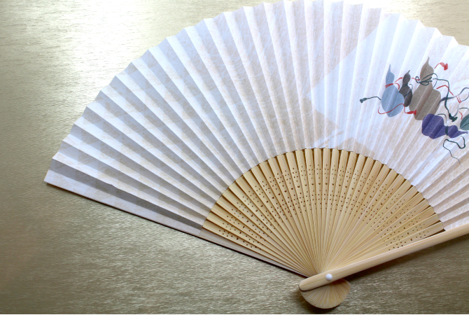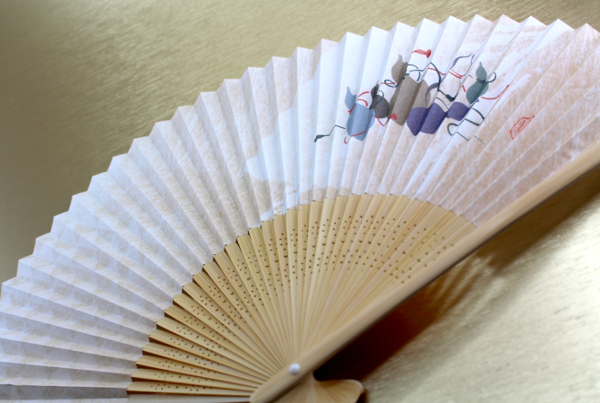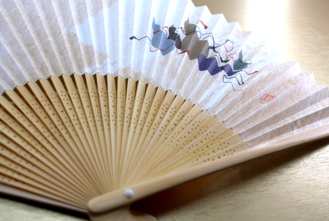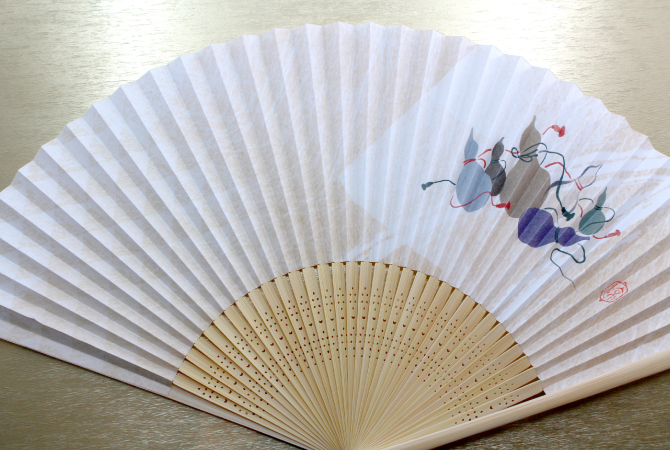 京都で作った扇面紙に図案作家の画を施しました。販促品やプレゼントもOK!扇ぐとほのかに香り漂う涼やかな扇子です。