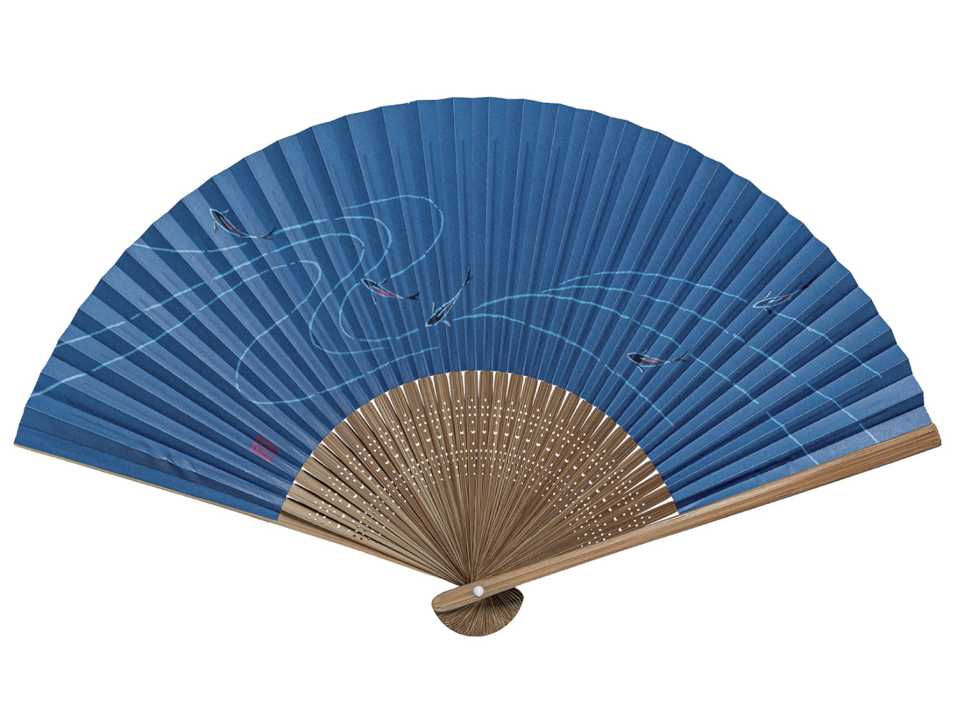京都で作った扇面紙に図案作家の画を施しました。